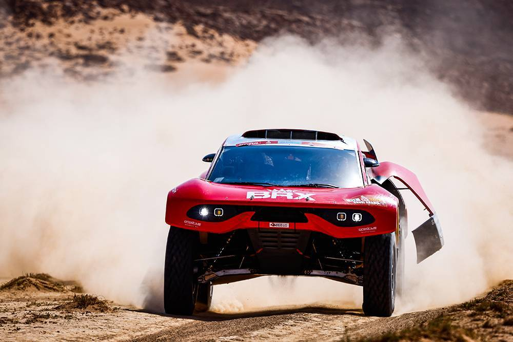 Overdrive丰田车手阿尔拉吉遭遇爆胎,损失了10分钟左右的时间。领先总成绩榜的阿尔阿提亚则选择稳步前行,并没有去拼到极限,而这意味着BRX车手勒布获得了今天的赛段胜利。虽然法国人在最后50公里遇到了机械故障,引擎一直会莫名其妙间歇性熄火,但勒布还是成功获得了职业生涯第16个赛段胜利。