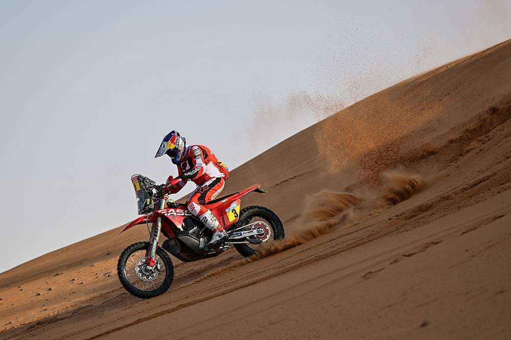 第21发车的本田车手科尔内霍获得了本届达喀尔个人第一个赛段胜利,这也是本田在达喀尔拉力赛的第95个赛段胜利。卫冕冠军凯文-贝纳维德斯获得赛段第二,在总成绩榜上进入前三。而左肩仍然非常疼痛的巴瑞德则奇迹般地拿到了赛段第三。
