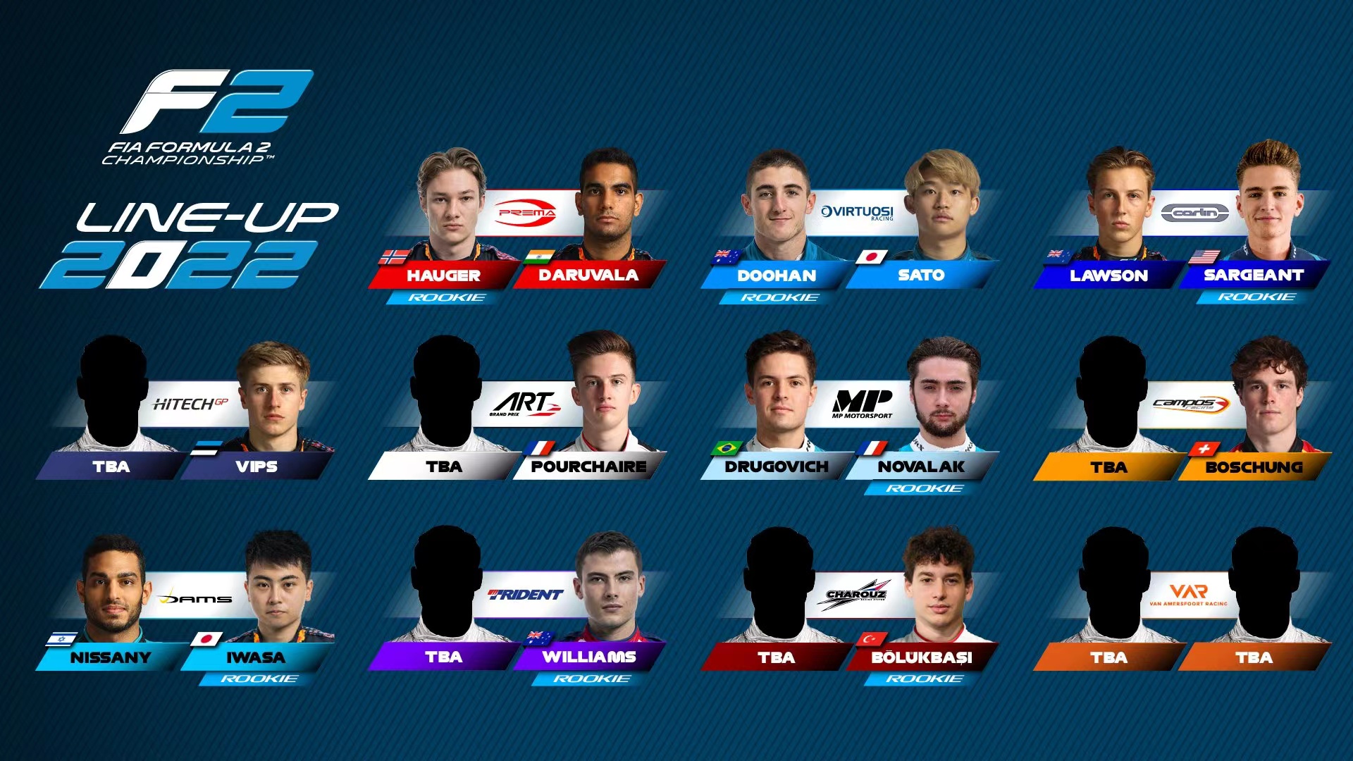 F2官方发布了目前为止已经官宣的车手席位,22个席位中有15个已经尘埃落定。
