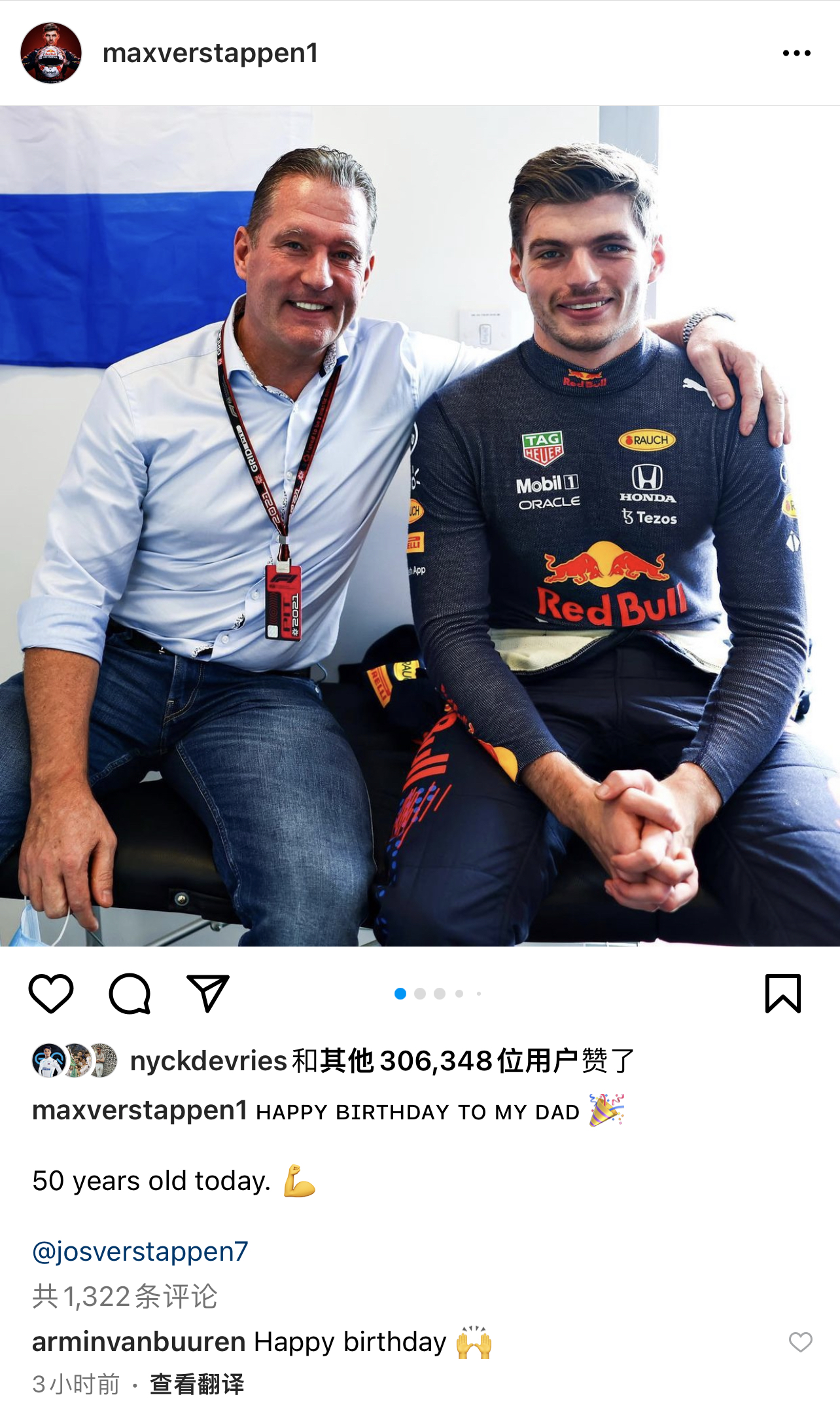 【Ins】维斯塔潘:祝父亲50岁生日快乐