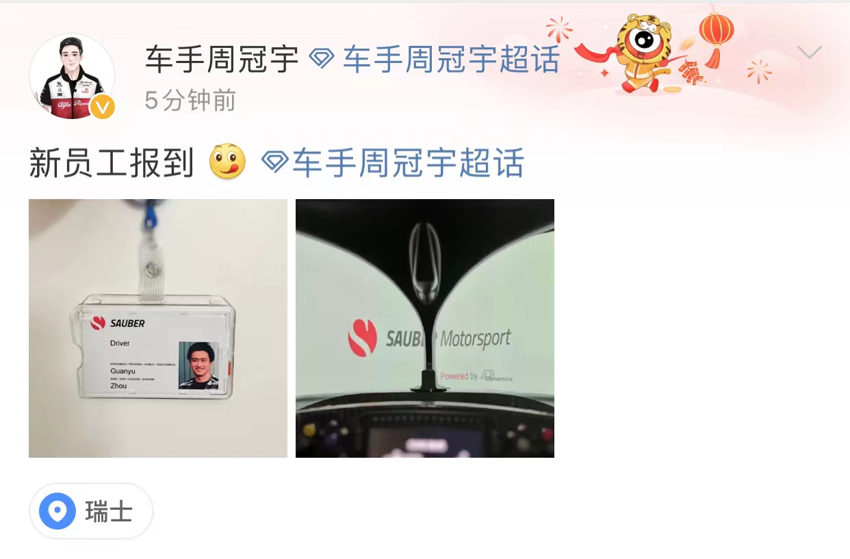 周冠宇刚刚在自己的微博上发布了新赛季的工牌,这位中国车手已经正式开启了自己的F1之旅。