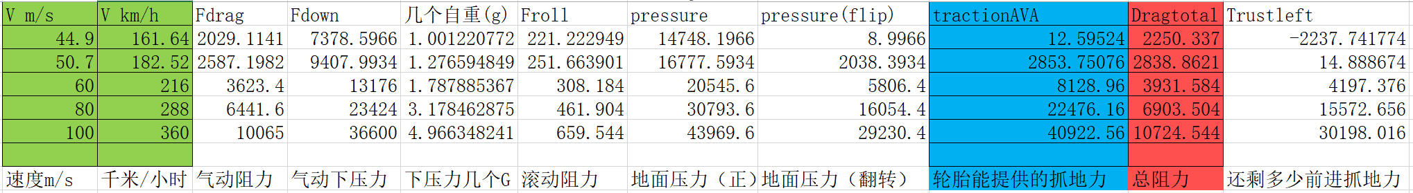 -CL是升力系数,F1根据不同规则和下压力设定一般在-3.5到-5之间,这里我们取个-4。负数代表下压力,但为了方便说明,得数我们取绝对值;