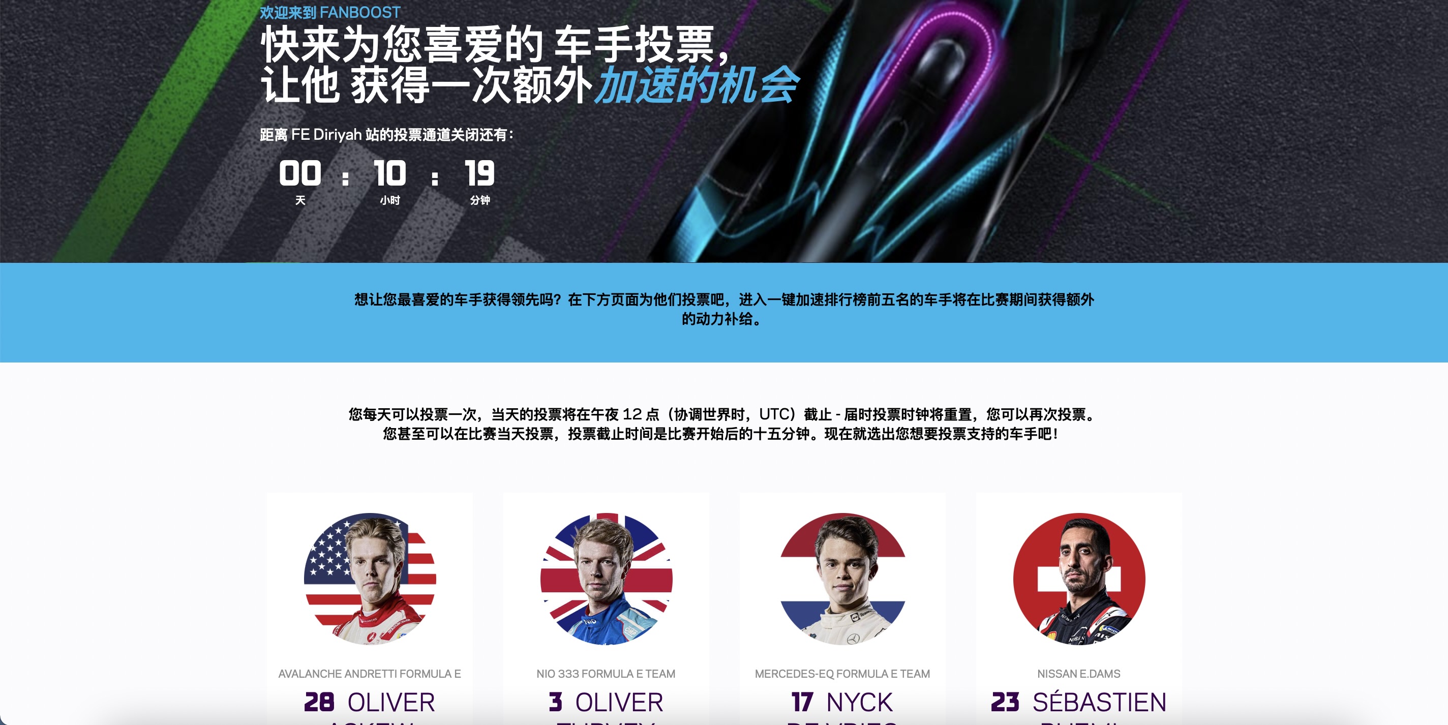 在比赛中,获得Fanboost的车手总能凭借额外的电量优势超越对手,因此很多车迷都会不予余力给自己喜欢的车手投票。