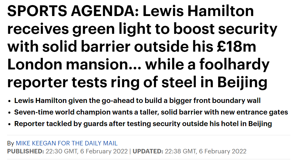 汉密尔顿花了1800万英镑在伦敦购买了这栋豪宅。之前汉密尔顿就想建造更高、更坚固的围墙,还有新的入户门。但邻居们认为这会阻挡周围的自然光,因此有所争议。