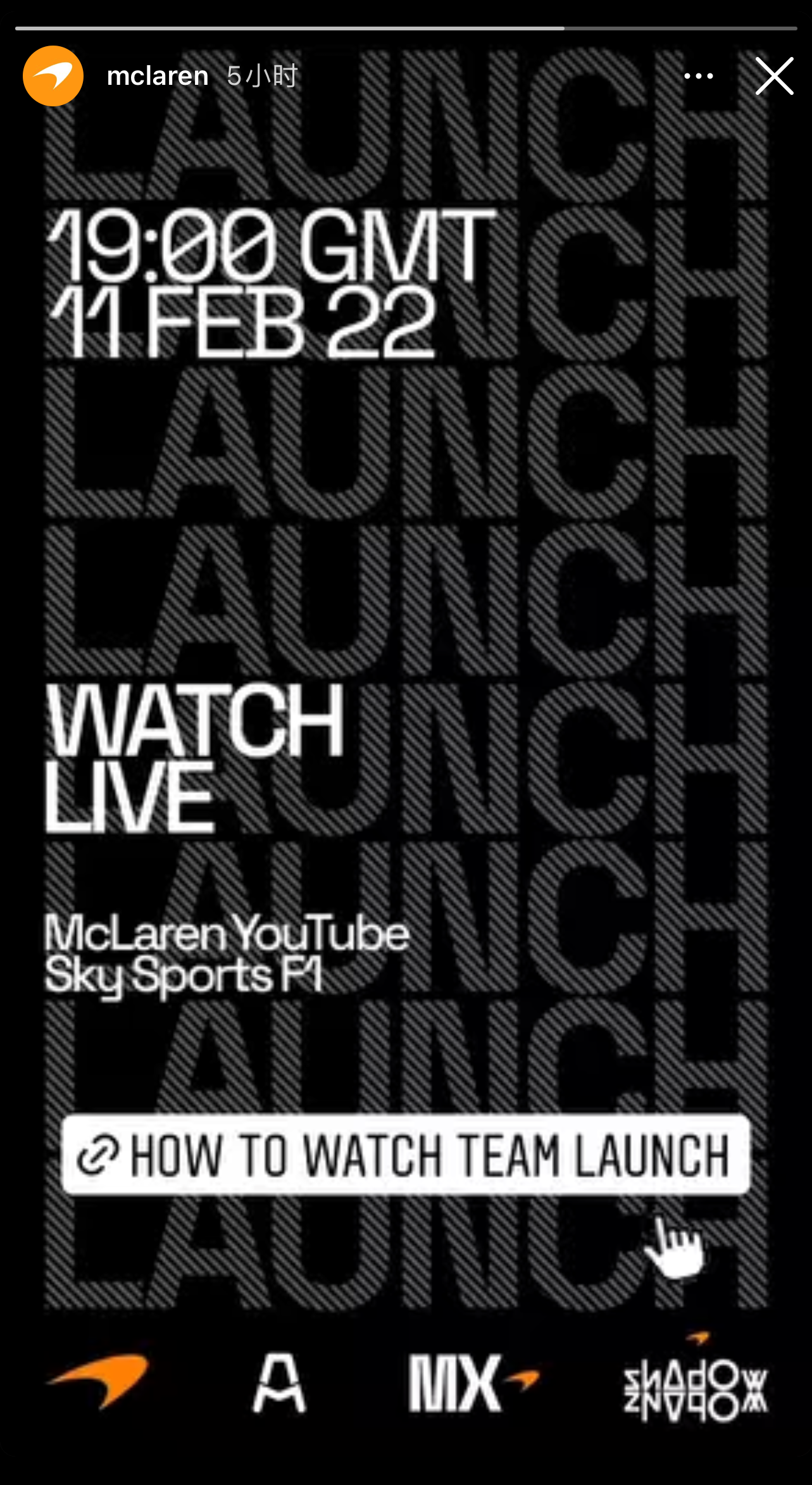 迈凯伦将于北京时间2月12号凌晨3:00通过线上直播发布新赛车。
