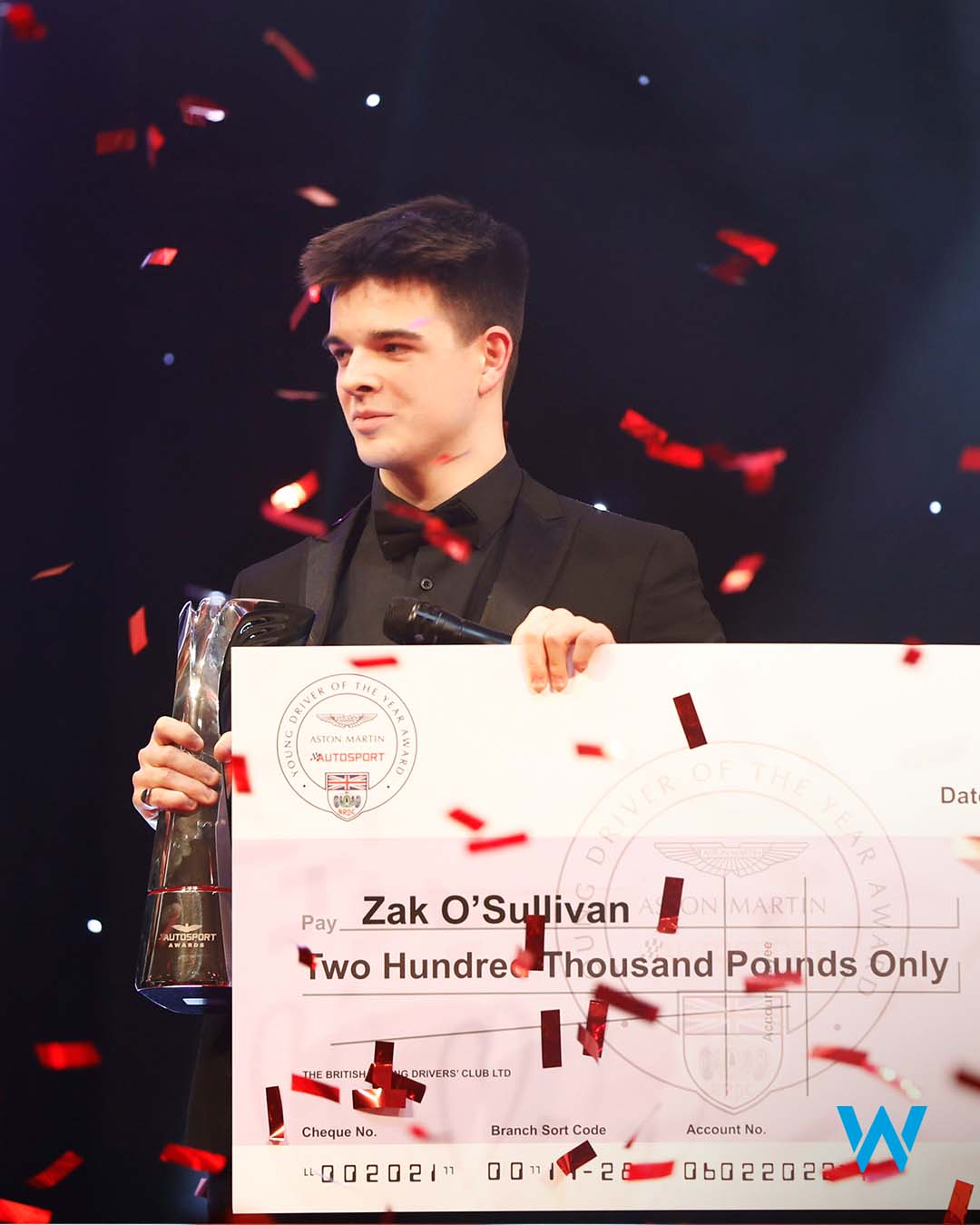 威廉姆斯青训车手扎克·奥沙利文赢得了阿斯顿·马丁赞助的BRDC年度青年车手奖,他的奖励是20万英镑和阿斯顿·马丁的F1测试。