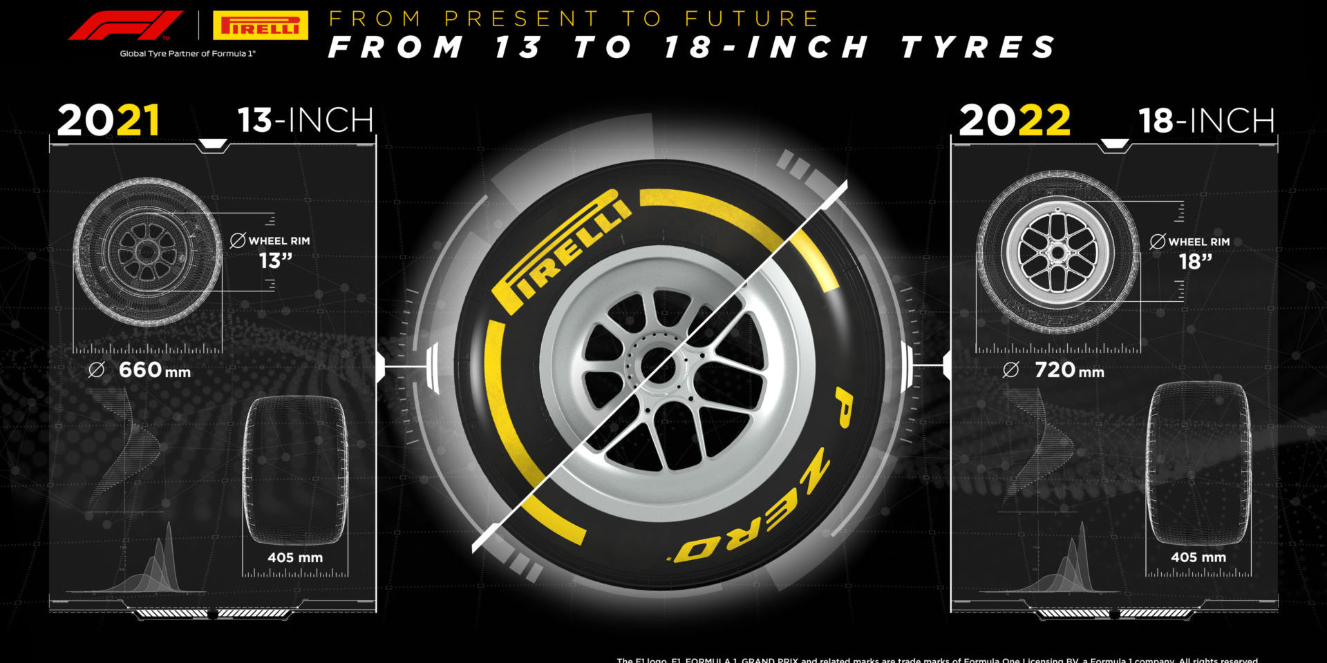 受疫情影响,18英寸轮胎的测试主要在2021年举行。倍耐力累计使用了1568套新轮胎,参与测试的车手总共完成了4267圈。测试共产生了70份虚拟样本和30份实体样本,这些数据将共同决定明年5款轮胎的配方与构成。