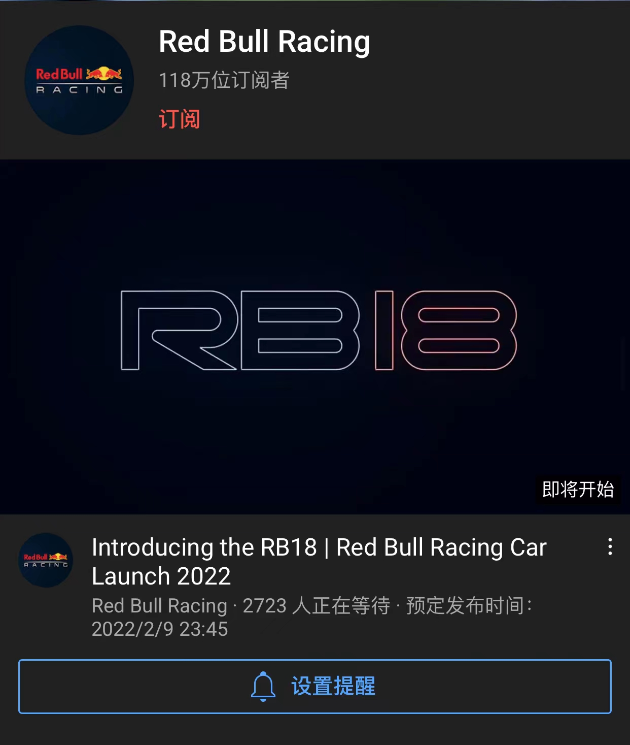 红牛新车发布会将在YouTube进行直播,直播将会在北京时间23:45左右开始,每日赛车也会第一时间更新发布会的相关消息。