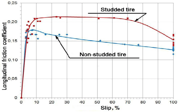 你可以看到下图里,钉胎在大滑移率情况下仍然有着不错的抓地力,这也就是你能用它持续漂移过弯的基础。