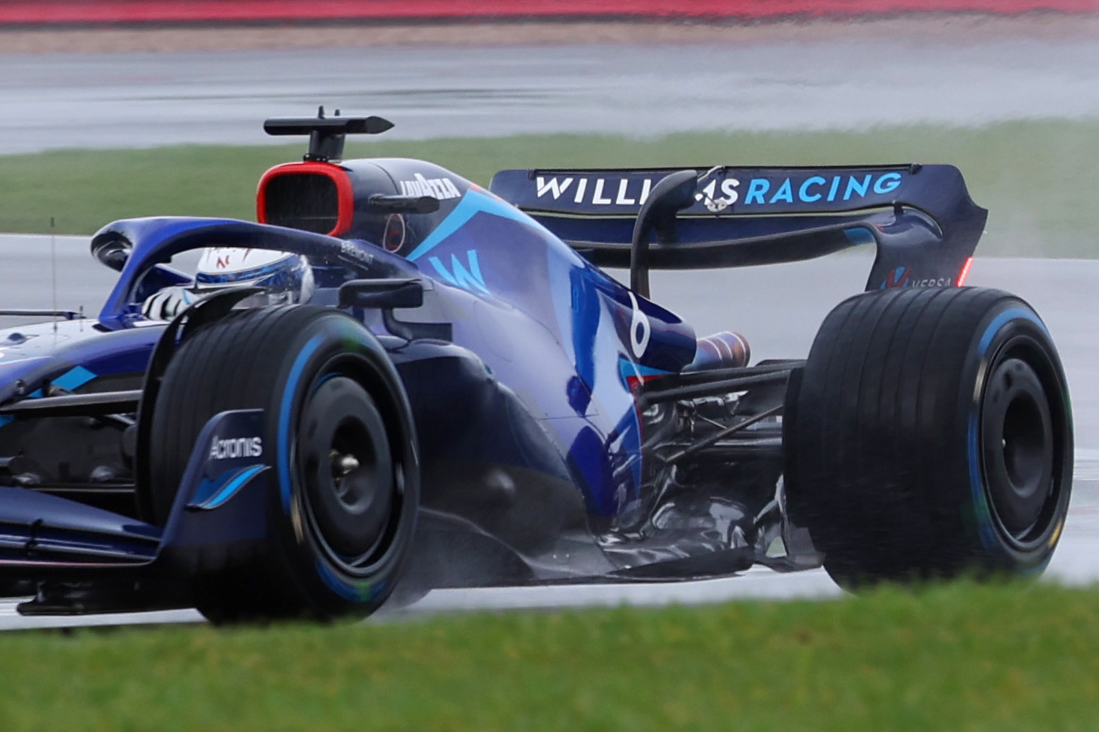 在前翼第三层和第四层内侧的位置,有一个连接它们的固定器,它的角度被设定在了高下压力的位置。安德森表示,考虑到赛车是在潮湿的银石赛道做测试,那么这一设定是符合实际情况的。