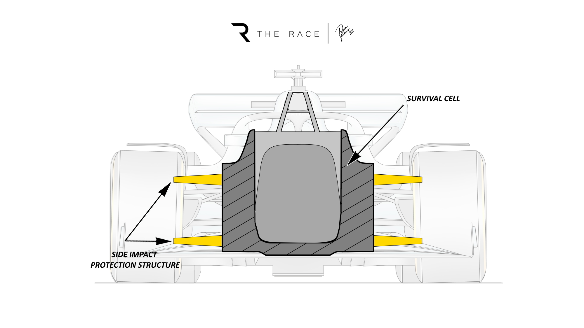 侧箱的设计也要符合赛车的安全性,它既要保证车手安全,又选哟兼顾空气动力学方面的优点。在这里,我们隐约可以看到通风管紧贴在底盘的一侧,而另一个从赛车的底板方向延展而开,而这些设计都不得超出规则所限定的部分。