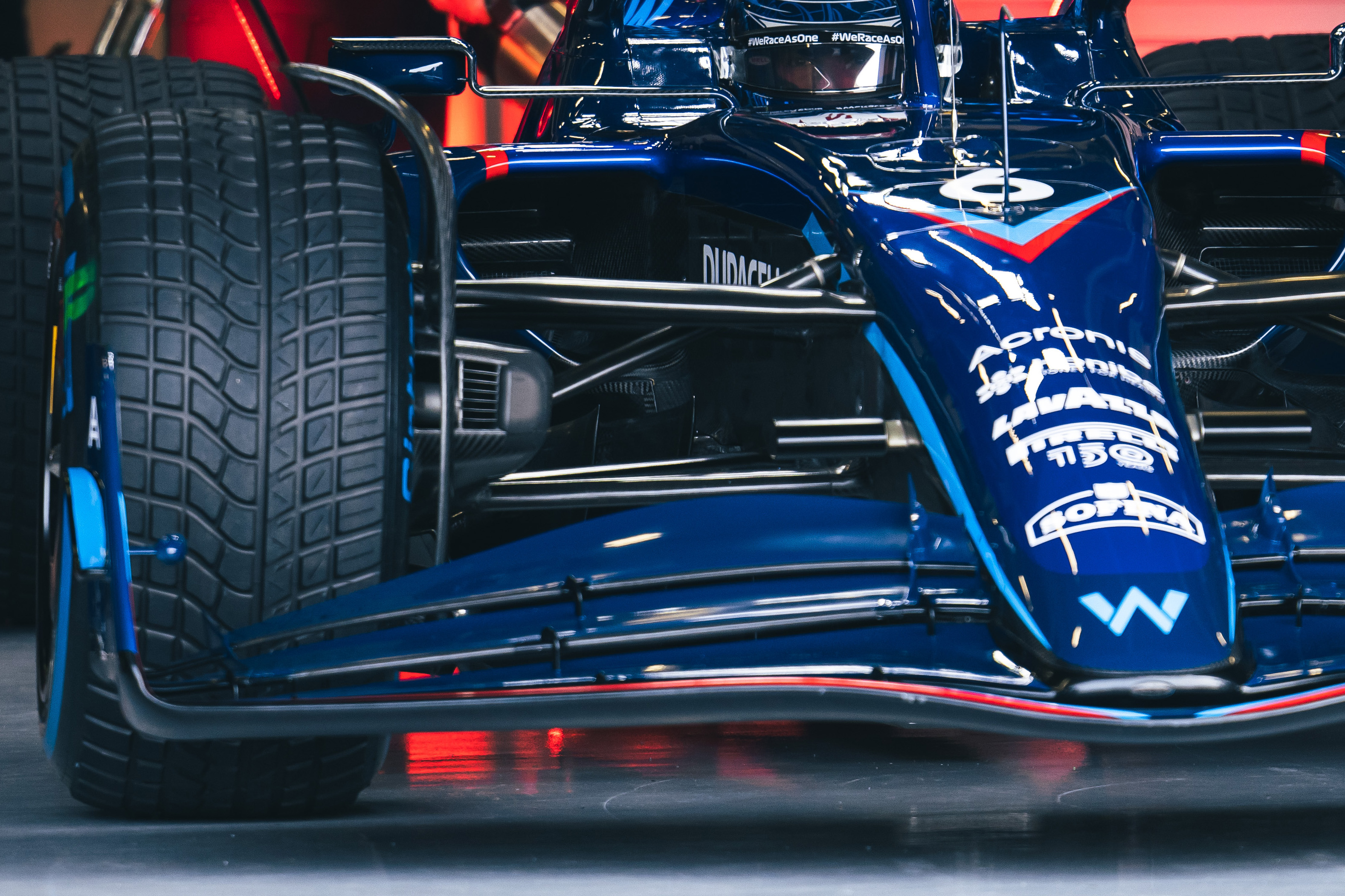 威廉姆斯赛车的鼻锥与前翼的风格,和阿斯顿·马丁、迈凯伦的样式大致相同,鼻锥下方与前翼第二层的部分相连接,在前翼的最底层和第二层之间留有缝隙。