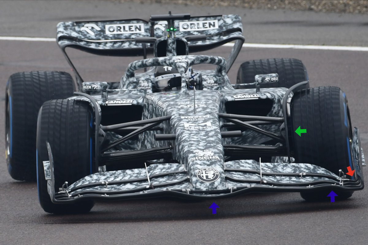 与其他车队发布的新车相比,阿尔法罗米欧新车的前翼更加接近最终参加正式测试的规格。阿尔法罗米欧再次选择了一个较小下压力的外侧设计。这也使阿尔法罗米欧成为自2019年规则大改以来迭代最激进的车队。