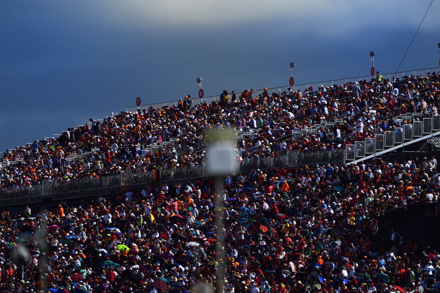 3. 11场大奖赛的现场观众人数超过了10万,除了上面提到的三场之外,还有比利时(21.3万),荷兰(19.5万),土耳其(19万),巴西(18.1万),阿布扎比(15.3万),沙特阿拉伯(14.3万),奥地利(13.2万)和匈牙利(13万)。
