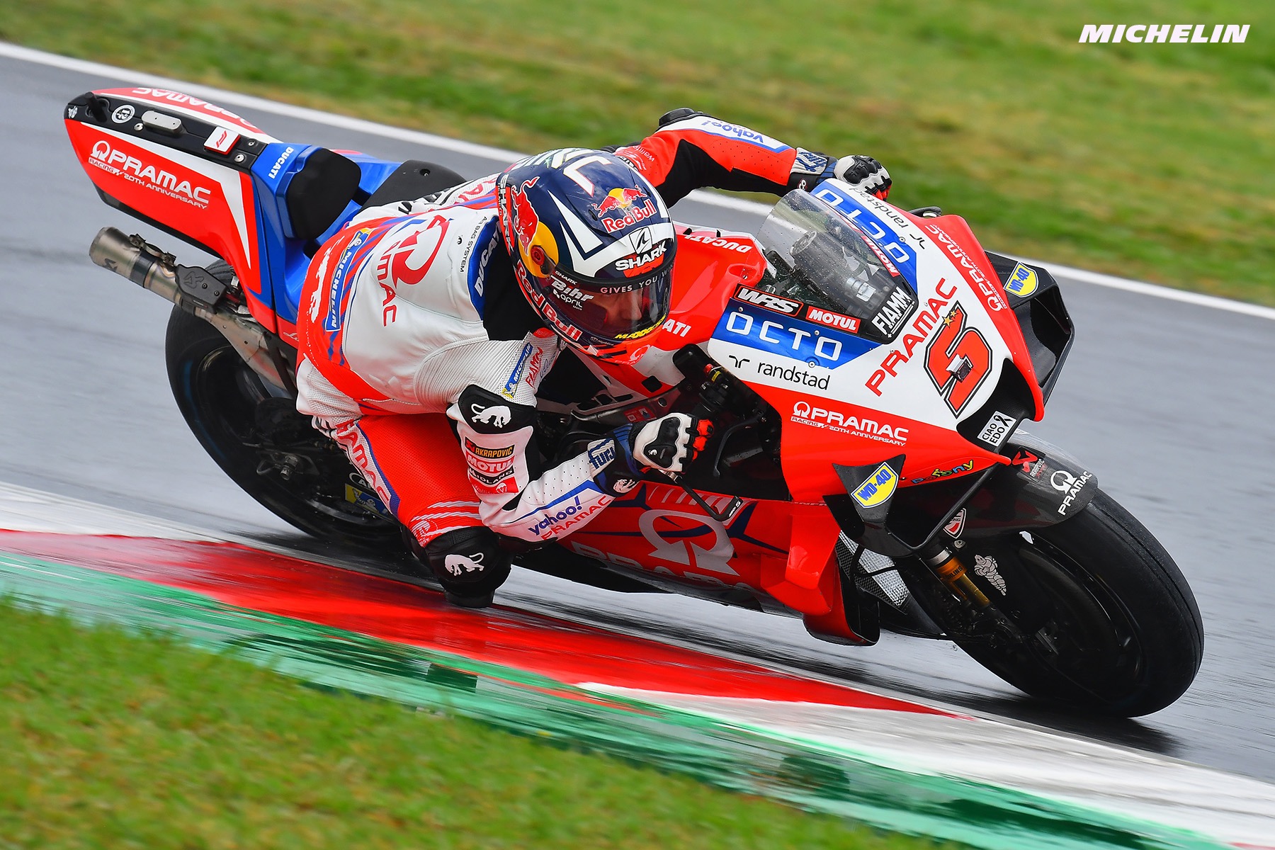 整节练习赛都在湿地的情况下进行。比赛刚开始没多久,LCR本田车手亚历克斯·马奎兹就在2号弯摔车,KTM厂队的宾德也冲出了赛道。车手们小心翼翼地感受赛道状况,成绩不断提升。杜卡迪厂队的两位车手和KTM的奥利维拉、勒库尔纳表现抢眼,不断刷新成绩。