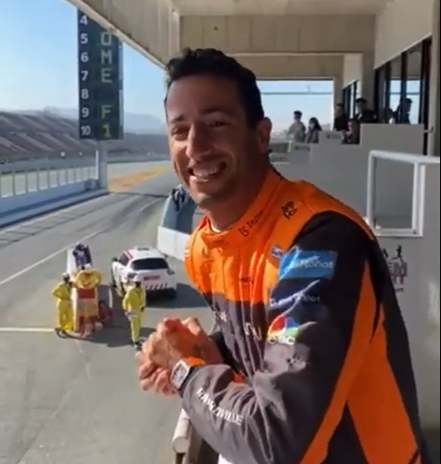 里卡多疯狂挥手,给赛车内的维特尔打招呼:“嘿,他是我朋友!”