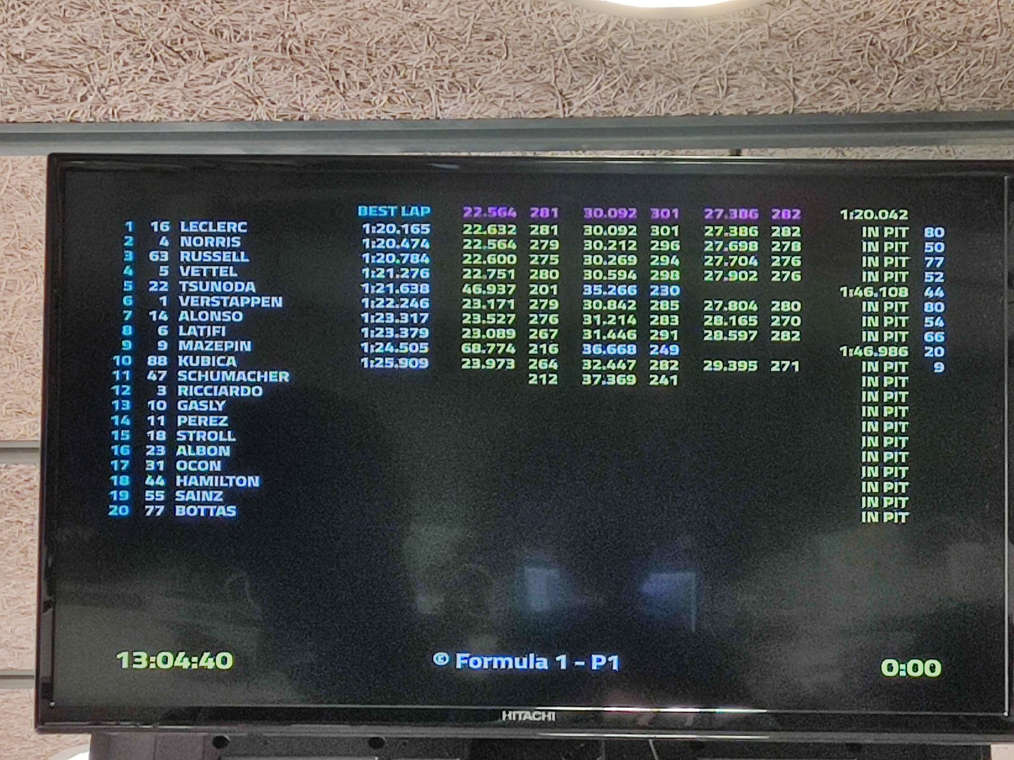 首日冬测半程结束,成绩榜上勒克莱尔,诺里斯和拉塞尔暂列前三位。