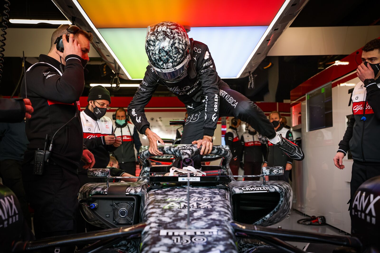【高清图】周冠宇首次身披阿尔法罗密欧队服现身车房