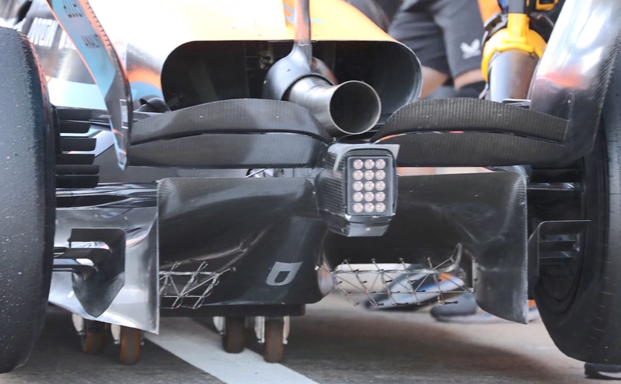 两处气流在后悬处才汇合。双层的侧板可以在之间产生向下的涡流帮助封闭底板,维持更好的地面效应。