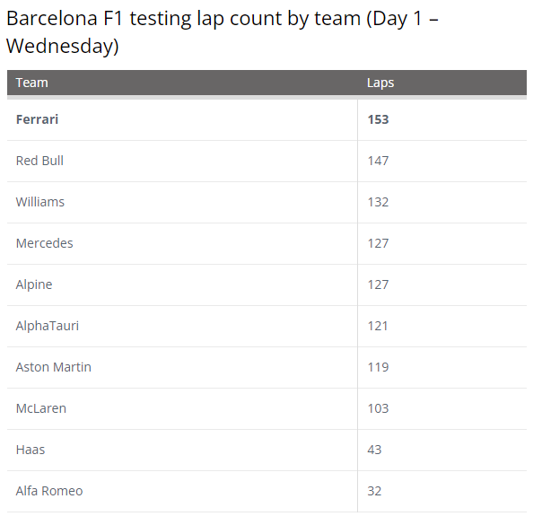 首先,冬测的圈速大家不用太看重,法拉利一般是冬测之王。