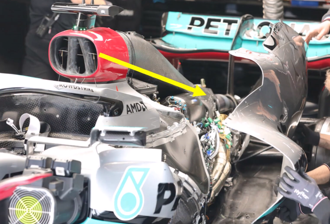 威廉姆斯侧箱竟然还有一个通风口,穿过侧箱再外洗乱流。