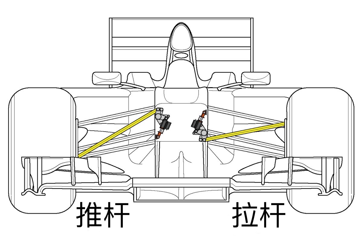 自从今年各支车队发布新车后,赛车悬挂的推杆和拉杆设计就被多次提及。其实,推杆和拉杆是两个相对容易辨认的结构。