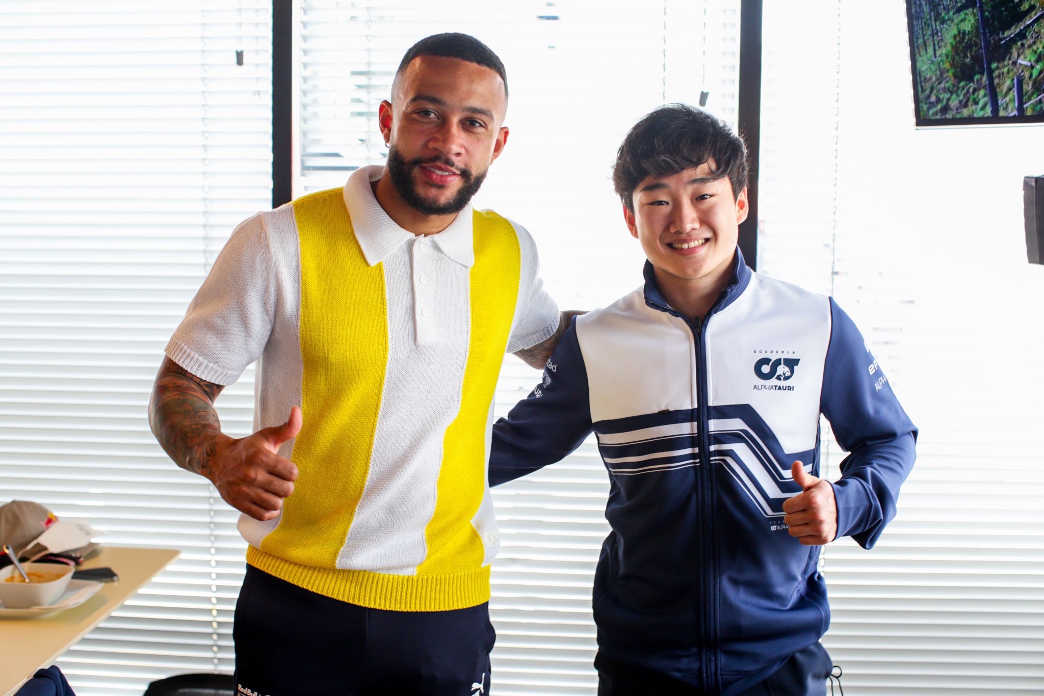 荷兰球星,目前效力于西甲巴塞罗那俱乐部的球员孟菲斯·德佩今日在加泰罗尼亚赛道探班F1冬季测试。与维斯塔潘,加斯利和角田合影。