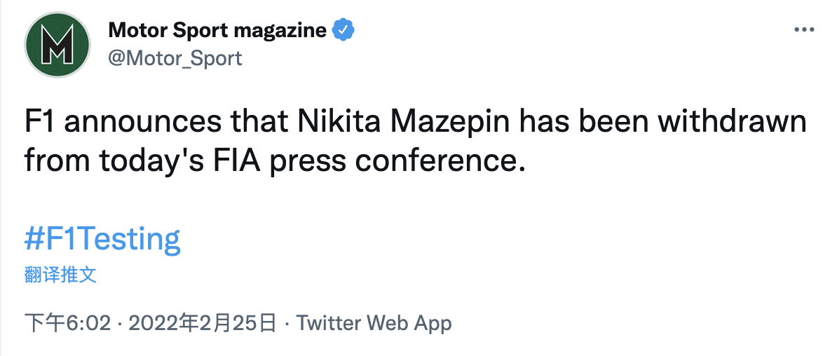马泽平将不出席今日车手发布会