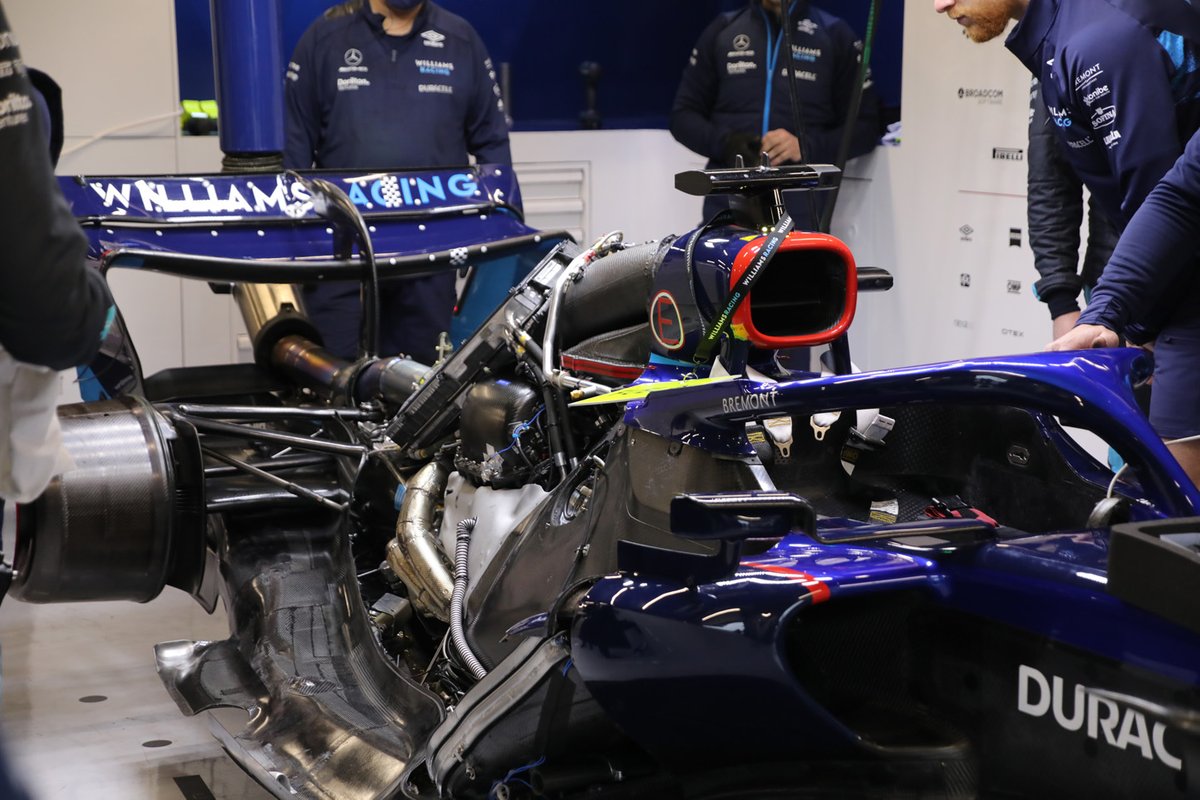 威廉姆斯倾斜的侧箱,需要注意的是发动机罩的宽度,现在大部分冷却装置都位于此处。
