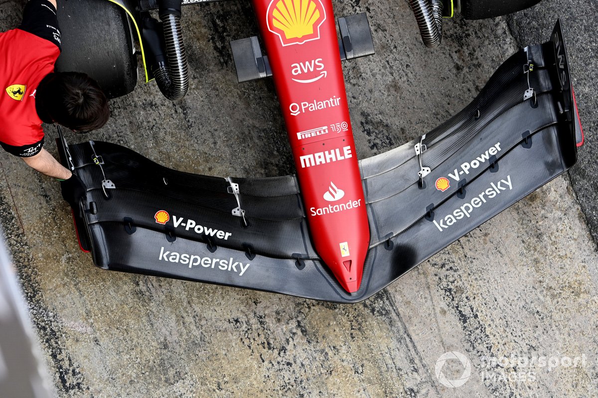 法拉利前翼,第三和第四片翼片比主翼片和第二翼片窄得多。