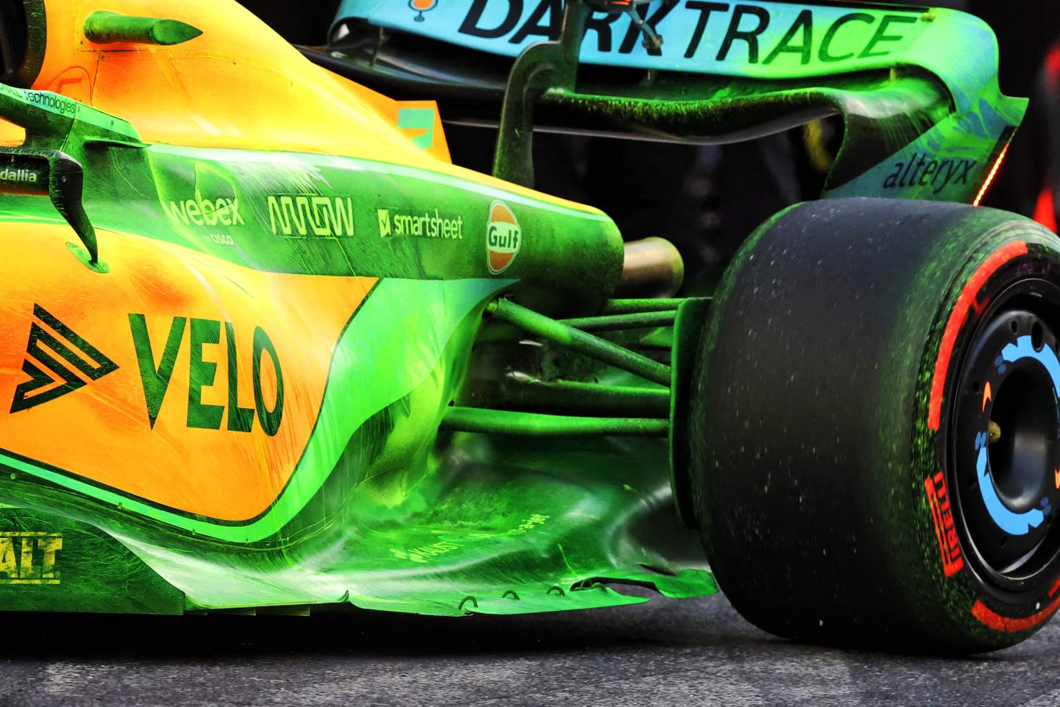 而梅赛德斯赛车上的涡流强度远不及迈凯伦,这意味着为了获得来自车底的下压力,车队需要W13的底板更接近赛道表面,这使得它对底板封装的两侧非常敏感,而不是“机械”密封。