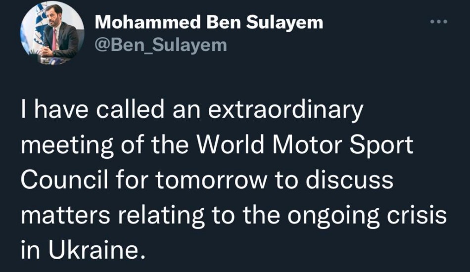 FIA将于明天召开世界汽车运动理事会特别会议,讨论俄罗斯和乌克兰的危机。