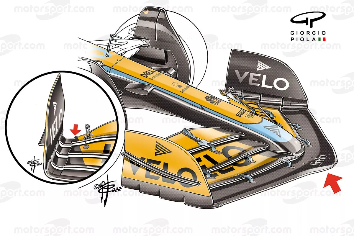 车队认为使用地面效应后底板边缘载荷急剧上升的新车需要更多的额外稳定性,因为新车的车身高度与前几个赛季相比要低得多,这使得底板边缘与地面的距离变得异常的近。