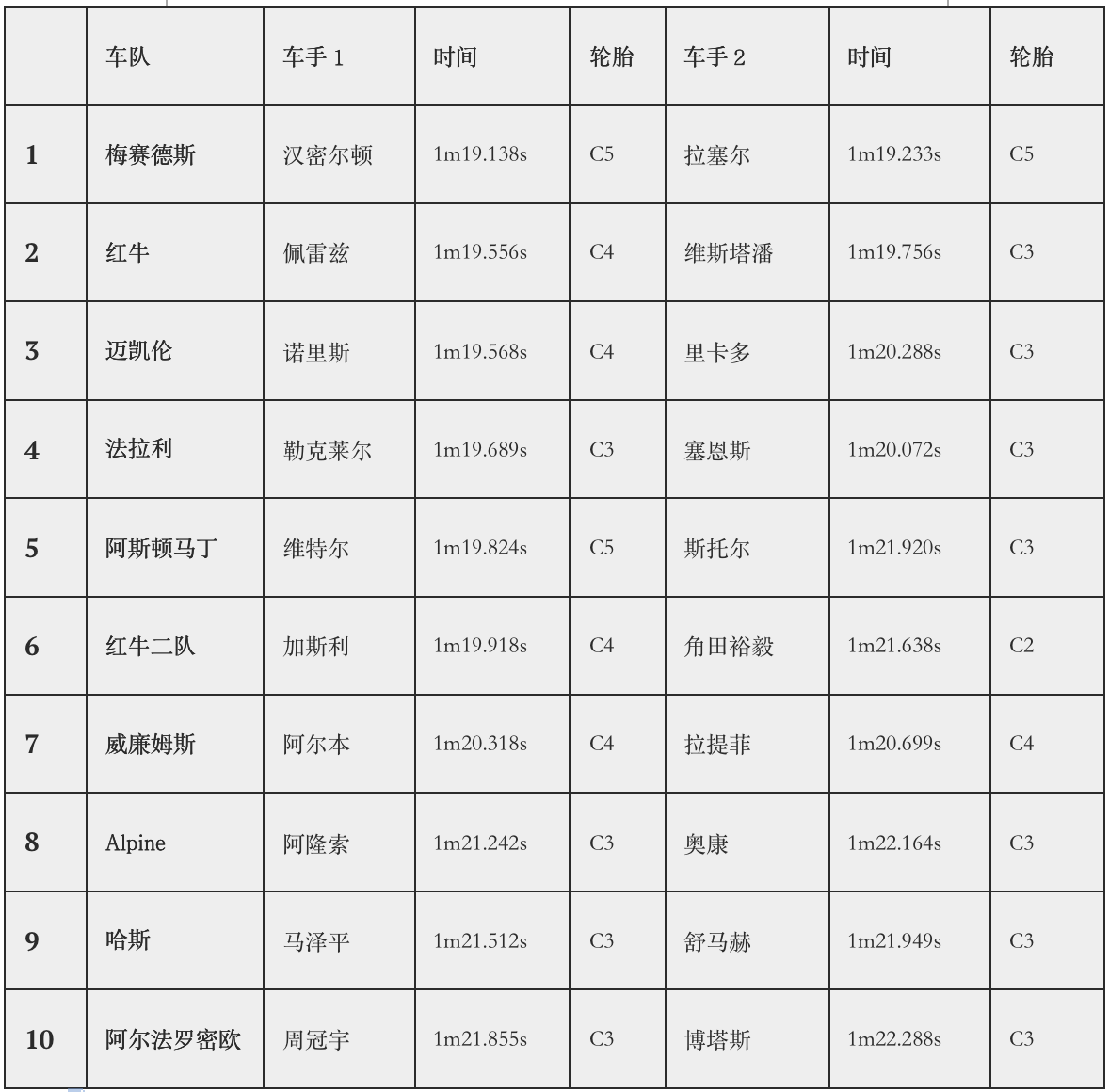 C4换算时间:角田裕毅 1分19.638/加斯利 1分19.918