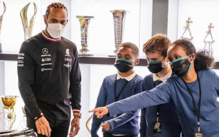 近日,在梅赛德斯车队的工厂里,七届世界冠军刘易斯·汉密尔顿给前来参观的小朋友准备了一个有些吓人的“惊喜”。在三位有志学习工程的孩子面前,汉密尔顿把自己打扮成了一位工程师,玩了一把“大换脸”。