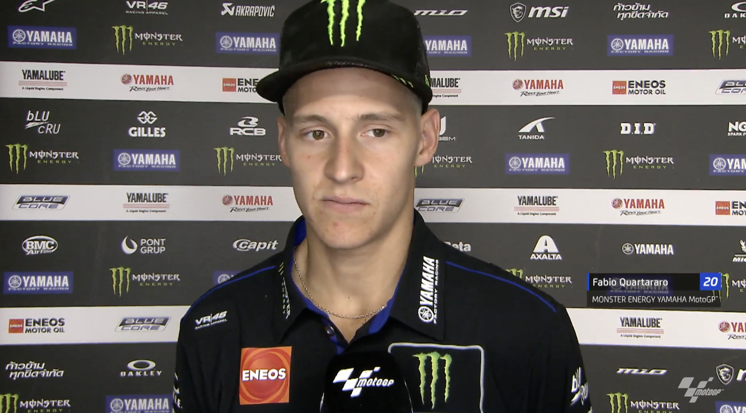 接受采访时,夸塔拉罗说:“通过练习赛、排位赛的表现,我也不感到很生气,因为我知道自己已经做到最好。”