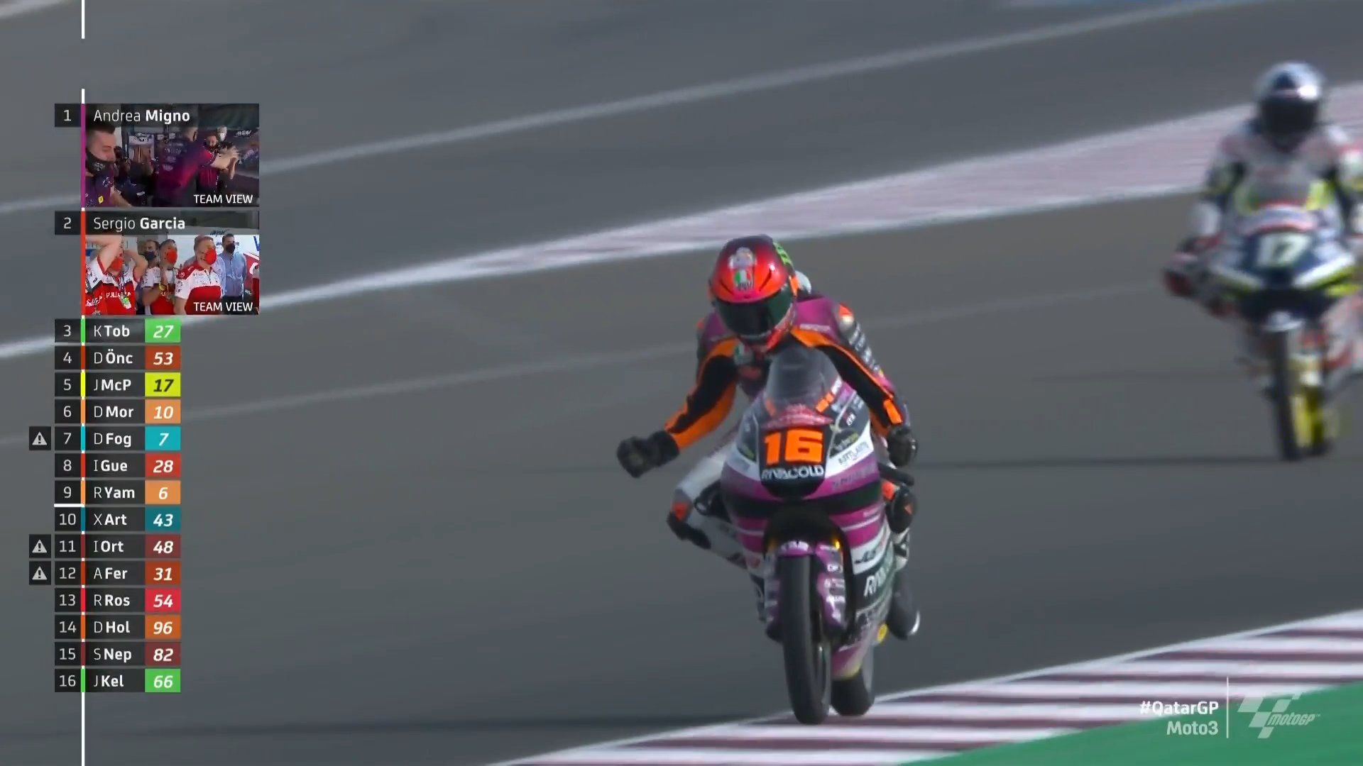 Snipers车队的车手安德利亚·米诺(Andrea Migno)夺得了2022卡塔尔站Moto3组别的冠军。这是他时隔五年再次夺冠。