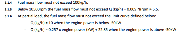 这就要涉及到赛车规则了,你可以看到技术规则5.1.4到5.1.6详细规定了发动机的燃油流量。
