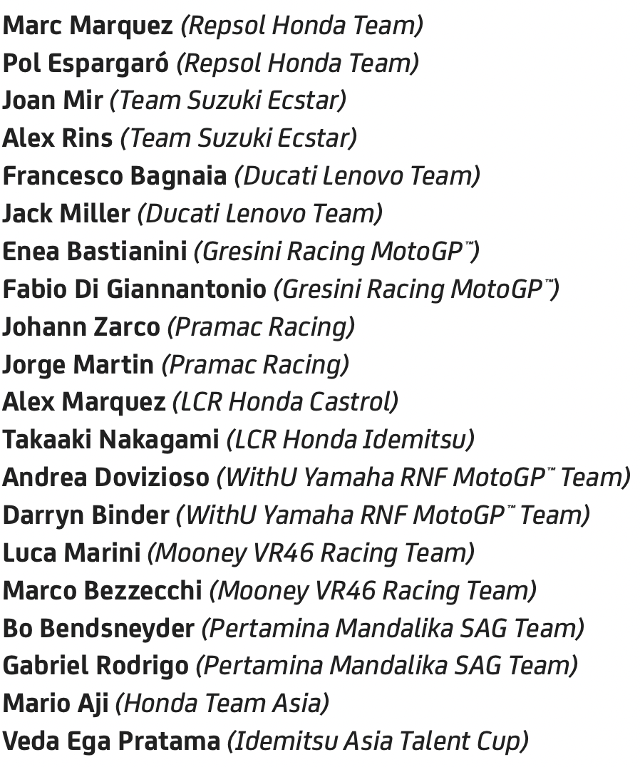 参与巡游的车手名单公布,其中也包括印尼本国车手。