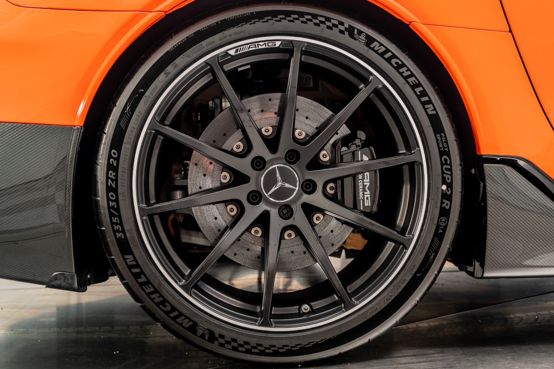 Black Series版本使用的轮胎,是米其林专门定制的Cup2 R,相比GT R的Cup2进一步升级。这种半热熔配方的Cup2 R几乎抛弃了湿地性能和日常驾驶的约束,力求把赛道操控能力发挥到极限。