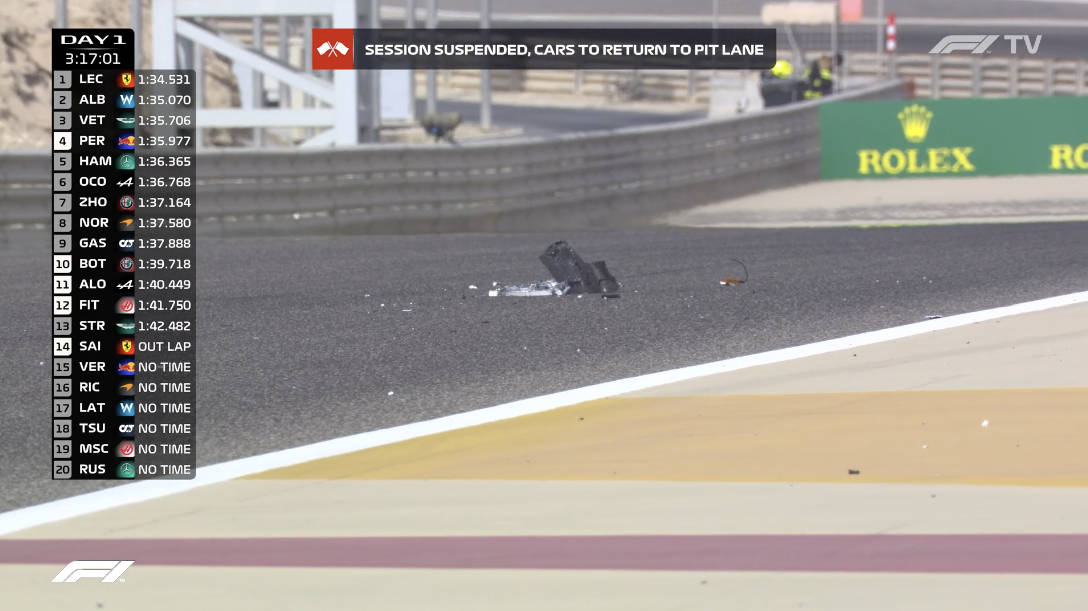斯托尔赛车上搭载的“烧烤架”脱落,掉在了赛道上,引发红旗。