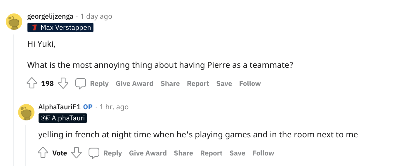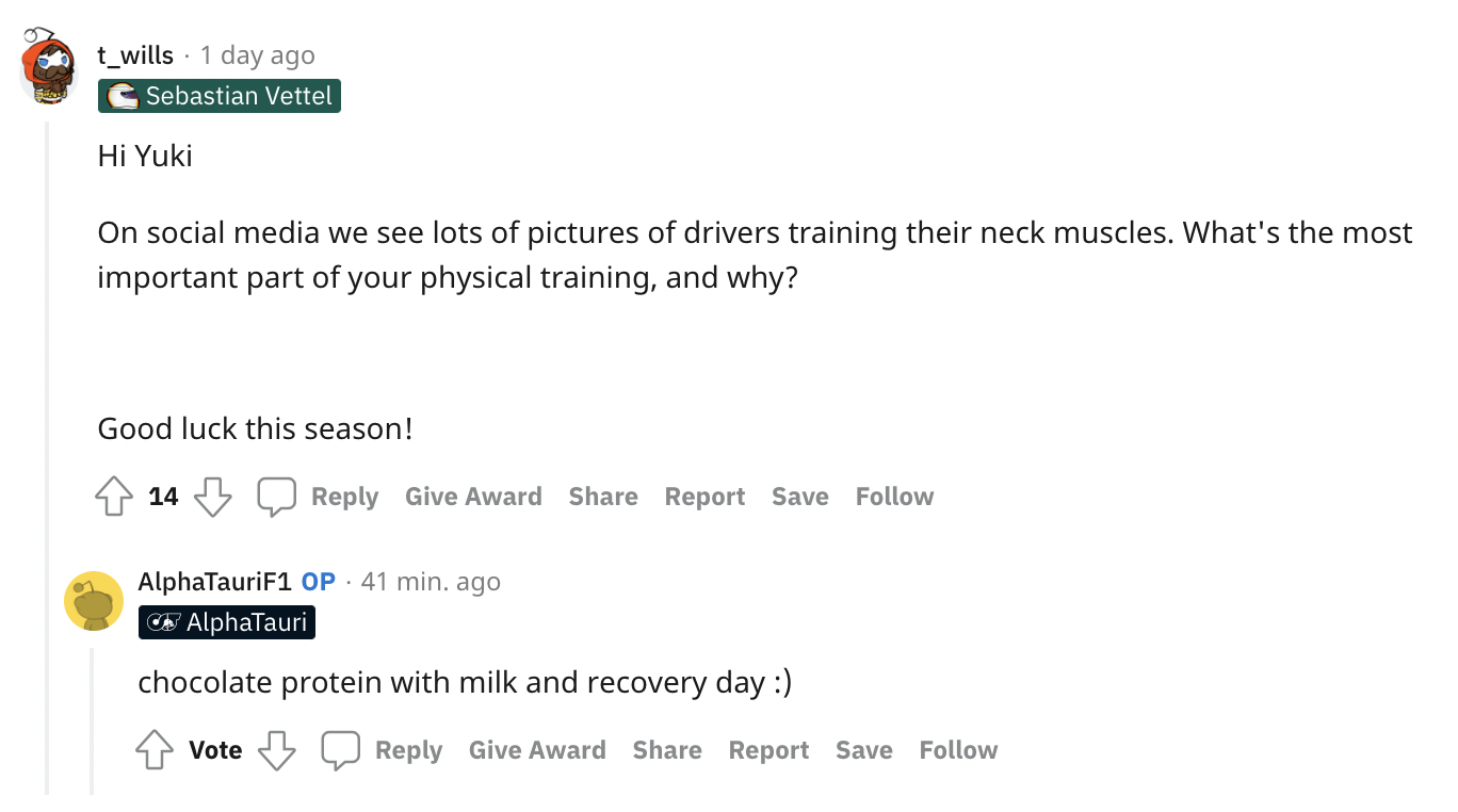 角田裕毅在巴林测试的第一天还在Reddit上回答网友问题。