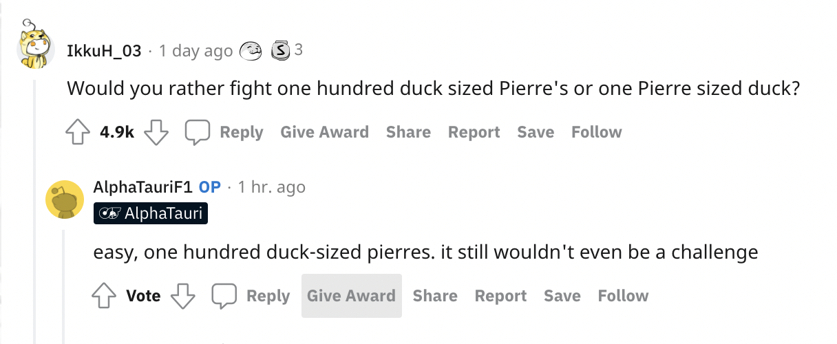 角田裕毅回答道:“简单,100个鸭子大小的加斯利,对我来说不成问题。”