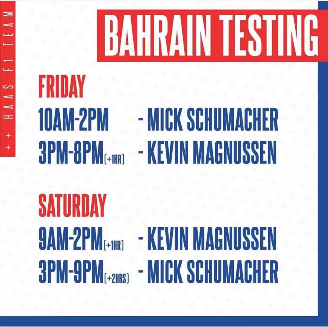 因运输出现问题,哈斯车队并没能赶上巴林冬测首日的上午场,FIA给予了他们额外的四个小时来测试赛车。