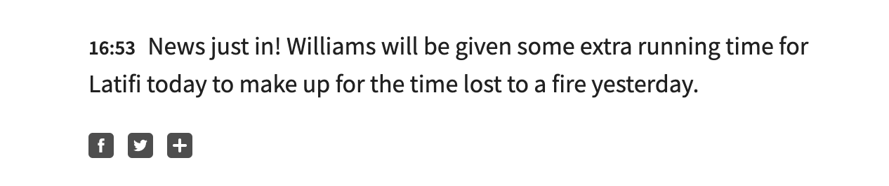 据Autosport报道,因为昨天威廉姆斯赛车起火损失了半天的测试时间,所以他们将会获得额外的测试时间。