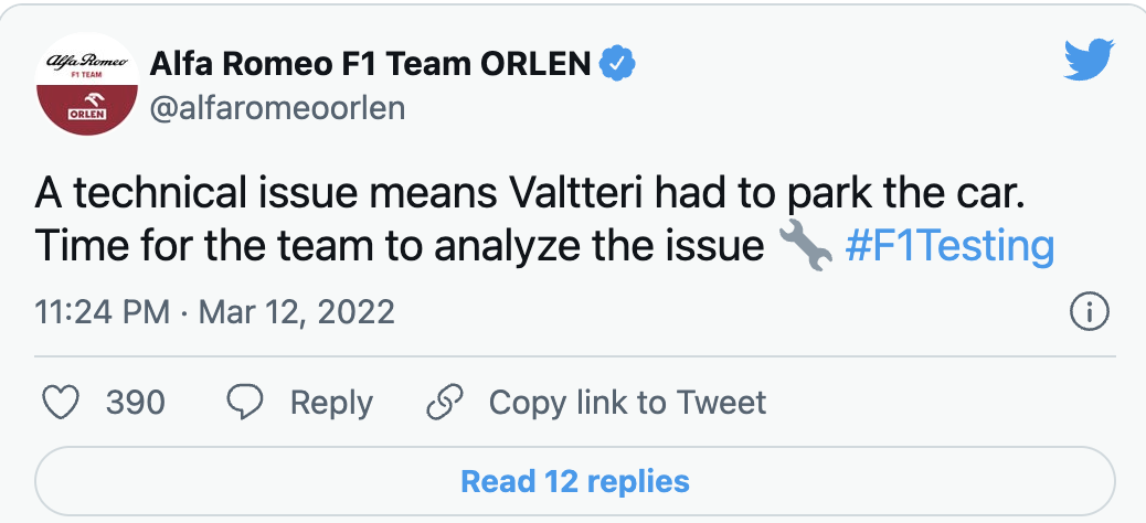 博塔斯赛车遭遇机械故障,导致停车,引发红旗。