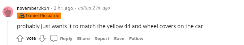 @shiinamachi:车队可以随便支配T架颜色吧,加斯利和角田去年就是反着的,维特尔今年在阿斯顿马丁还是黄T架。
