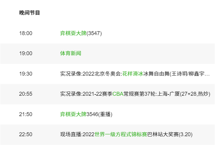 CCTV5:拥有本赛季F1版权,但目前未排播本周末巴林大奖赛。