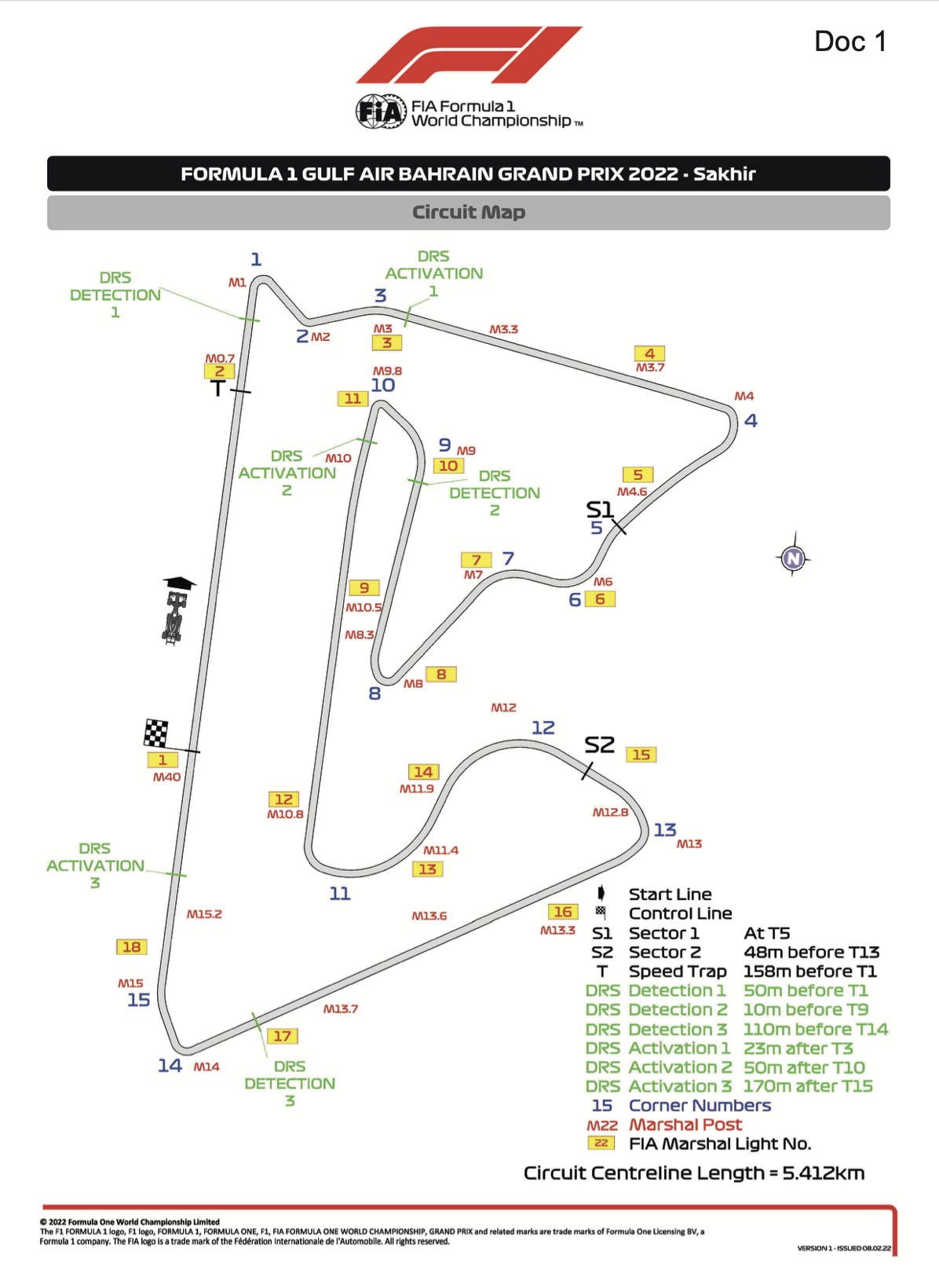F1官方发布了巴林站的官方赛道图。图中包含了三个DRS区域,和去年巴林站的DRS区完全相同。