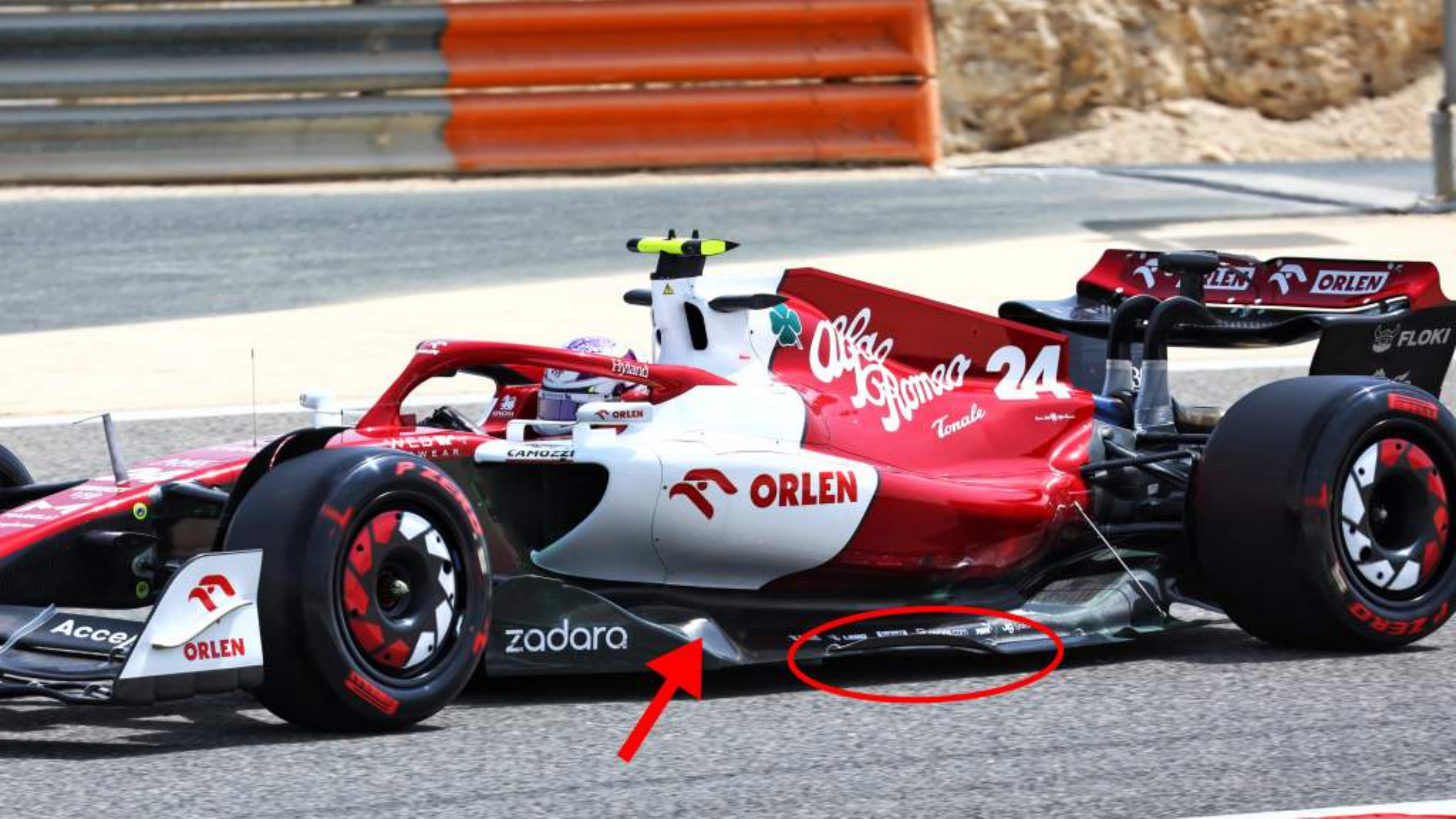 阿尔法罗密欧也有一个非常明显的下切(红色箭头)在底板较低位置的侧面,这甚至可能有助于密封底板后部所需的涡流并提高其强度。